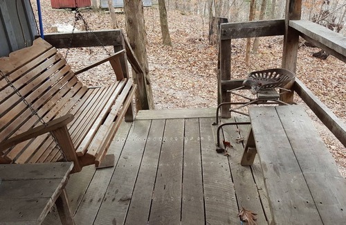 The facts: The cabin is one room with a covered porch and porch swing. Inside you will find everything you need: Comfortable double bed, kitchen with antique gas stove, all kitchen utensils, dining table. There is an wall furnace for heat or use the wood stove if you prefer. But, importantly, the cabin is off-the-grid. That means, kerosene lamps, ice box cooling, trips to the outhouse. And, of course, there is no air conditioning in the summer when we take it off the calendar.