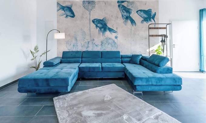→ Großer 72" Smart-TV mit rießigem Designer Sofa