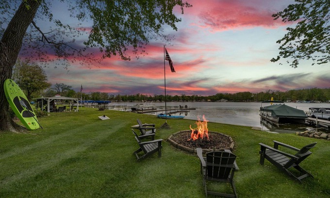 The backyard, house, gravel area, front yard, firepit, and dock are all yours! Please be respectful of the neighbors, and please be aware that the section just to the right of the property as you face the lake has a pier that is shared between a few neighbors across the street.