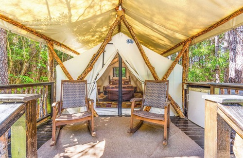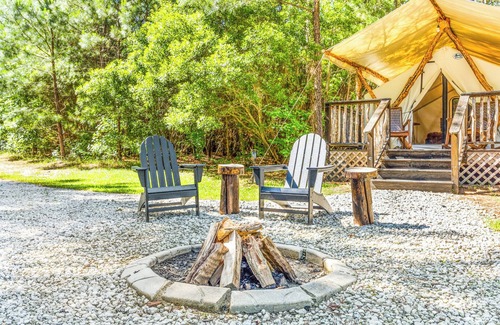 Escape the hustle and bustle of everyday life and immerse yourself in nature with this charming, secluded glamping tent 🏕️, tucked away in a peaceful forest 🌲 just a short drive from Myrtle Beach 🏖️! Perfect for those looking to unwind 😌, reconnect with nature 🌿, and enjoy a little luxury under the stars ✨, this unique retreat offers the best of both worlds — a cozy, private escape surrounded by towering trees 🌳 and only 18 miles from the vibrant energy of the beach.