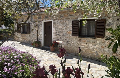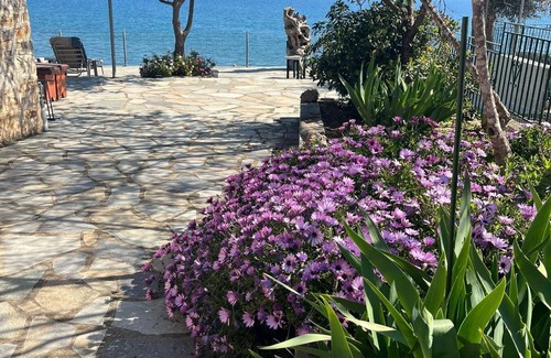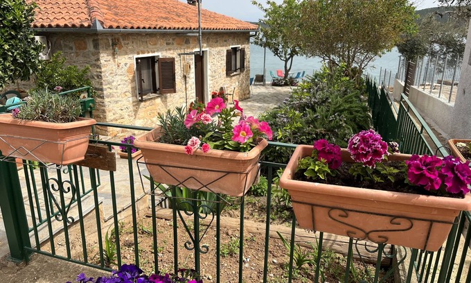 Lovely modern old stone cottage. Literally right on the sea, with a small private beach. Has a huge terrace overlooking the sea,with covered eating area.You are right on the water with stairs directly to the beach. The property is fully fenced in for the safety of small children and pets. There are 6 lounge chairs for relaxing and gazing out to the sea. We have several guests who bring their boats with them. We can provide mooring. This cottage sleeps 6 comfortably. In addition to the 2 bedrooms, the living room has a sofa bed (which can sleep 2 kids easily) and there is a roll away bed in the closet. It fits easily into the bedroom with the twin beds or the living room. No charge for extra people. You can bring as many people as you are willing to share the bathroom with. Size of cottage 90 SQ METERS We also have free WI FI.