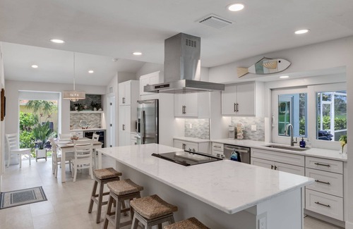 Welcome to Little Blue - A newly redesigned and rebuilt vacation home of the highest caliber! Featuring four bedrooms and three bathrooms, a smart and intuitive floor plan, and a heated pool and spa, this sublime residence is situated in the Beachview community of Sanibel Island, FL just a short walk or quick bide ride, through the golf course, to the neighborhood-only beach access, restaurants, shopping, and more!
