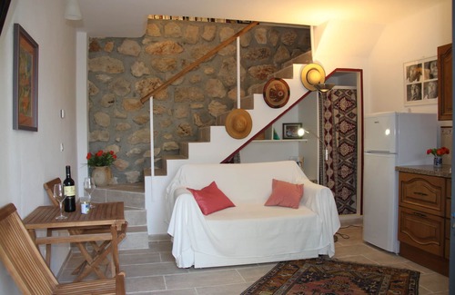 Adjoining to Casa Christa, Casita Elisa opens onto a shady terrace with a barbecue, and close to the heated pool which is accessed by a paved path, winding between bushes of lavender, oleander and yuccas.Casita Elisa is set on two levels and offers intimacy and tranquillity in its beautiful surroundings. Although situated on a SLOPING GROUND, its staircases and fitted-out paths make for easy access. You can take advantage of its swimming pool, SHARED with the owners Christa and Pascal, its numerous shady terraces and its petanque field.In the various hidden recesses of its park you will discover places ideal for meditation. You can relax by listening to the sounds of the many birds and the tinkling of the bells on the neighboring goats herds.