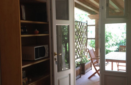 Charming intimate dependence of a Tuscan country house, quite private garden overlooking the woods, 20 mt away from large pool. Ideal for lovers of any age and sex. Perfect for a single creative looking for an inspiring, quite working retreat in the countryside close to Tuscan historical towns.