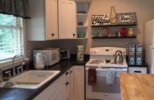 The cottage is in a rural setting off the main road(Old Route 60, now called Midland Trail Road) and easy access parking for several vehicles, cars, trucks, and or trailers. It sits on 4 acres bordered by Ogles Creek, US Interstate 64, and Midland Trail Road. Basic shopping and gas are available within 2 miles of the house plus a bakery within close driving range. A great place to stay if attending the PGA in July or the W. Va. State Fair in August or for just a break along the way North or South. Interstate access is within a mile of the cottage. Many historic sites are close by as well as fly fishing within a few miles.