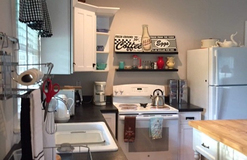 The house has an internet and basic cable TV. The television is a smart TV with Hulu and Netflix built-in so renters can easily access their own accounts for additional entertainment. The cottage is “pet friendly” (the porch is gated on both ends) though it is recommended that all pets have their own beds/crates, litter boxes, etc. and must be contained if left alone. Dogs over 75 lbs are discouraged and birds are prohibited.