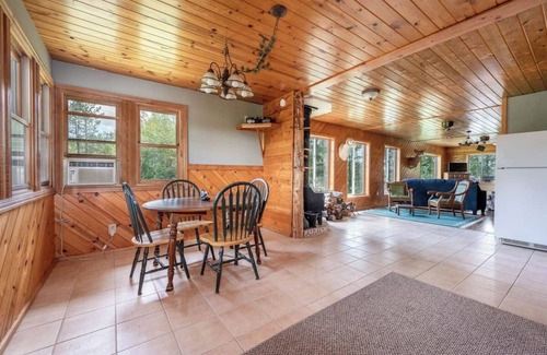 Escape to this quiet cabin in the woods. Tucked 15 minutes down scenic country roads between two lakes. Sit back and watch the wildlife walk past from the comfort of the porch, deck or snuggle up inside to take advantage of 180 degree views through the wide windows.