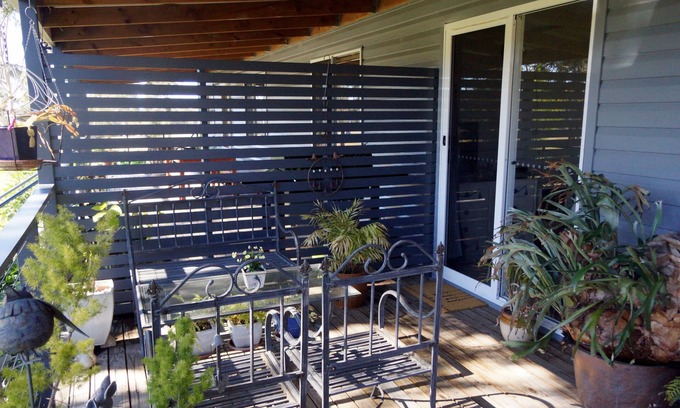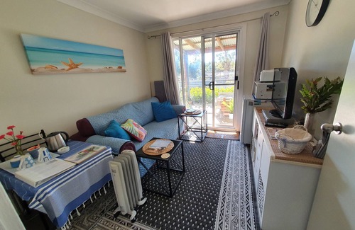 Little Finchley is self-contained with small sitting room, separate QS bedded room, and full bathroom (NOTE: shower over bath). The unit has a private entrance off an enclosed (marine wire) sheltered and gated deck which includes outdoor seating and BBQ. We are situated in a pretty, tranquil, rural setting of lightly treed land overlooking a large dam to the east, and only two minutes from the Princes Highway in Wandandian, half way between Nowra to the North and Milton-Ulladulla to the south and only 20 minutes from the heart of Jervis Bay. The unit is smaller than our main cottage (refer property listing 9171423), and is best suited to shorter stays, eg travellers who are just stopping overnight in transit, or a couple of nights on a longer journey up or down the coast, or people who will be out most of the time and don't need all the additional amenities or space provided with the main cottage (this smaller unit has no kitchen, and limited catering facilities). The unit includes TV, DVD player, toaster, kettle, small electric frypan, microwave, crockery, cutlery, some pantry items (coffees - including plunger, teas, toast toppers, oil, condiments etc), and a bar fridge. A fan or evaporative cooler are available if required in the hotter months; electric blankets and column heater in winter. Continental breakfast provisions are included in the price, and are negotiated with the guests at time of booking. Guests prepare breakfast for themselves at their convenience. Well-behaved, house-trained dogs are welcome, subject to negotiation and advising of breed(s) and age(s) of pets at time of booking. The unit is non-smoking, and is equipped with smoke detectors. A BBQ is also available on the deck, and appropriate tools provided. The rooms are small but comfortable. There is plenty of space for pets to stretch their legs outdoors, and we ask that guests respect the environment, resident hosts and neighbours when staying at Finchley. No parties, no additional guests except by prior negotiation, and please pick up after your dogs.