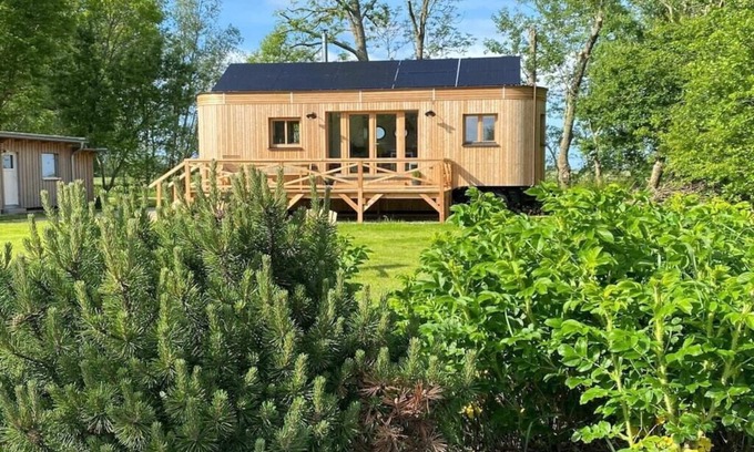 Tiny House "Little Glück" - rural tiny house for 2 people with a large garden, sun terrace and lawn, fireplace and gas grill.