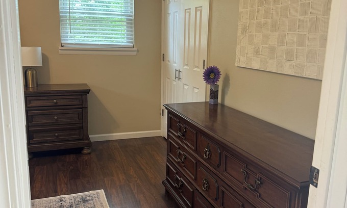 This house is perfect for a couple or a small family. Two bedrooms both equipped with dressers and a closet. The living room has a TV with a pull out couch. Full kitchen with BBQ grill in the backyard. The house is walking distance to downtown Kirkwood with many coffee shops, food options, churches, and a farmer's market. The house is also walkable to a park with tennis/pickleball courts, community pool, playground, and nice walking trails.