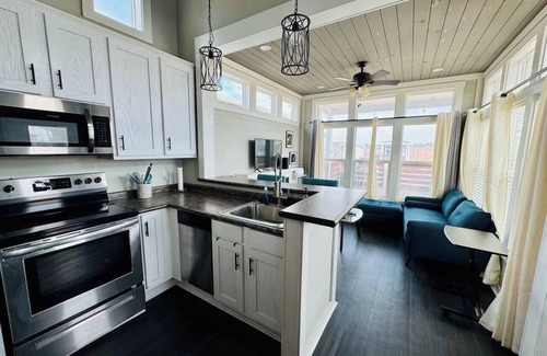 * Full kitchen with full-size fridge/freezer, microwave, stove + oven, dishwasher, dishes, cookware, silverware, coffeemaker w/ filters & coffee