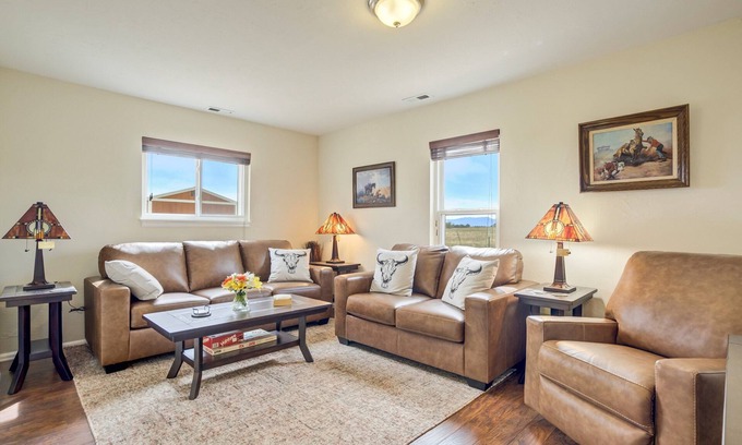 Escape to wide open skies and fresh country air at this private guest home on a stunning 40-acre property in Peyton, Colorado. Perfect for travelers seeking peace, space, and a touch of rustic charm, this 900 sq ft retreat offers everything you need for a comfortable stay. You'll enjoy a fully equipped kitchen, cozy living room with a smart TV, full bathroom and laundry, and a spacious loft bedroom with a queen bed and dedicated workspace. While the main home is also on the property, you'll have your own private space to unwind, surrounded by Colorado's natural beauty and free-roaming wildlife.