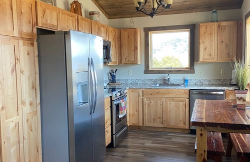 Juniper is located in the Gravelly Mountain foothills west of Ennis, Montana. It is an adorable brand new cabin with two bedrooms, one bathroom, and lovely East facing porch with great views of the Madison Range. The kitchen has stainless appliances and is fully outfitted. There is a washer and dryer, wifi and satellite tv. There is off street parking and plenty of room for a drift boat or extra vehicles. The cabin is quite private and is tucked in surrounded by Juniper trees. Ennis is an easy 10 minute drive to the East. Historic Virginia City is a 15 minute drive to the West.
