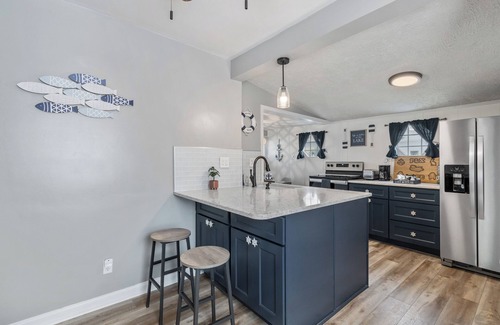 RELAX! Keep it simple at this peaceful and centrally-located lakefront ranch located on the main chain of Portage Lakes! Situated in a private cove, you will love the quiet area lake - great for fishing, kayaking, boating.. feel free to use our kayaks and pedal boat! This fully renovated lakefront space offers plenty of outdoor lounging & conversation areas, a fire-pit, new grill for BBQ’s, smart TV’s, smart locks, high speed internet, and is close to all the great local eats and bars in PLX.