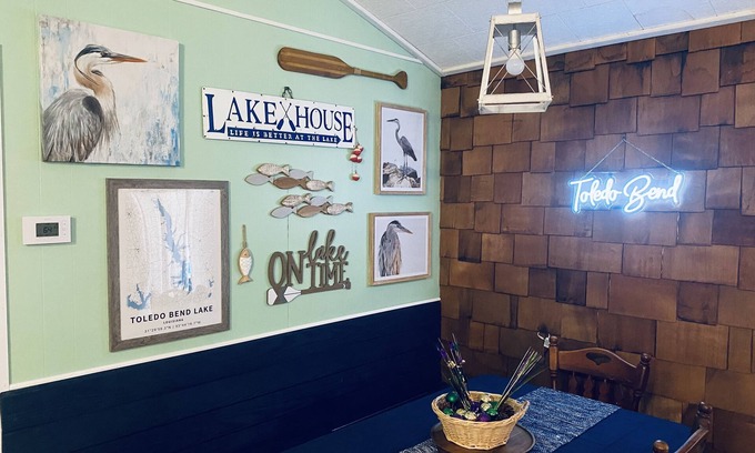 Small cozy home tucked in a quiet cove on the South end of Toledo Bend lake on the Louisiana side. Enjoy the indoor fireplace or the outdoor fire pit in the winter time or a quick jump into the lake in the summertime. A covered boat dock and only a 5 minute drive by boat to get to the main lake.