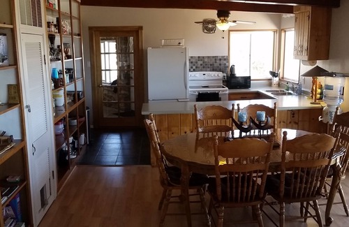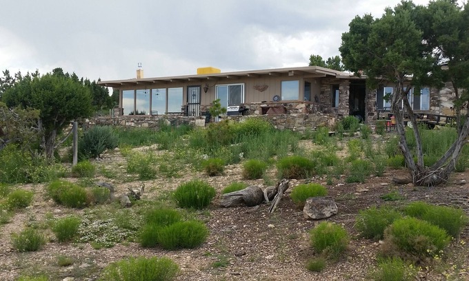 The home is located on 2 acres just 5 minutes from downtown, but feels like you're out in the country. The panoramic views are spectacular & ever changing. The sunrise over the Mesa makes the morning hangout on the porch a great way to start the day. Just as impressive would be watching the changing colors on the Bookcliffs while maybe grilling during the sunset. Hiking and biking trails surround the house with access to the lunch Loops Trails nearby. The house has an open feeling, with beautiful stone and woodwork. There is plenty of room for you, your friends & family on the 1,200 square foot concrete patio (with an 8 person hot tub) overlooking the Grand Valley. The private backyard features a covered sitting area and an outdoor shower complete with dual shower heads and hot water. A large laundry/mud room offers safe storage for bikes and other outdoor equipment. Recent updates include switching from an evaporative cooler to zoned mini split air conditioning. Pets are welcome to stay for a $60 fee and the outside has a fenced in back yard.