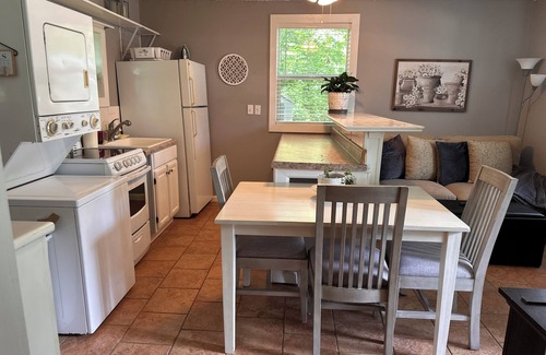 This adorable cottage in Flovilla is the perfect retreat for guests looking to unwind and relax. With a cozy living room featuring a sofa bed, this brilliant 1-bedroom property offers a fabulous escape from the hustle and bustle of everyday life. Experience the magic of Flovilla at our cottage. Wifi is included along a fully stocked kitchen, stackable washer and dryer in the unit, in-ground 40,000 gallon salt water pool with a waterfall and diving board. The best part about this property is the separate fenced in yard just for the cottage so you can bring your fur babies...(please see rules and regulations). Also, we are in the middle of Atlanta and Macon. This unit sleeps 4 guest total.
