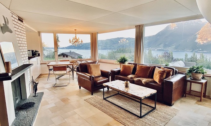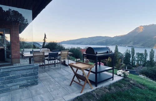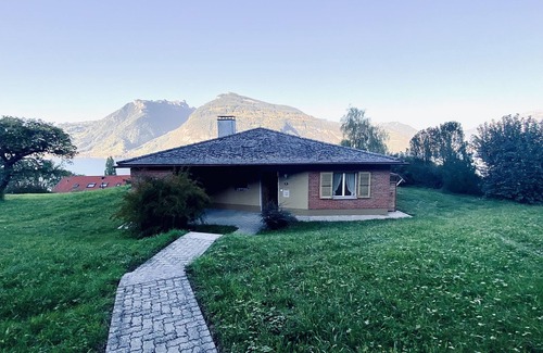 No parties allowed. One story holiday house of 85m2 with 20m2 terrace overlooking the entire lake Thun. No close neighbours, the parking is directly connected to the house. You have your peace and privacy here and it's a great starting point to explore the Interlaken area and the mountains of Switzerland.