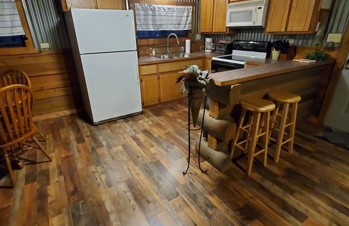 This little rustic log home is located in the wooded area of our property next to the Sunny Hill. It is equipped with everything needed to spend a few days away from the hustle and bustle of the city. Even though you are only a few miles away from all the area attractions like Turner Falls Park, the Chickasaw National Park, Chickasaw Cultural Center and only a mile from Arbuckle Lake this little home will let you relax and enjoy the peace and quiet of country life.