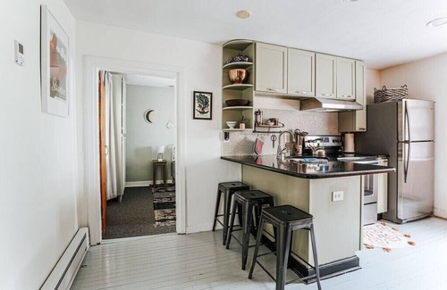 Welcome to Staunton! This historic home was one of the original workers' cottages in the 1800s. It's located downtown with a short walk to shops, restaurants, bakeries, Mary Baldwin University, Gypsy Hill Park, and Blackfriars Playhouse. It has all the charms of an older home like original pine floors and tavern-style doors, but with a modern kitchen, bathroom, internet, and AC. Free street parking.