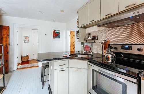 The cottage is a perfect blend of old and new! Built around 1855, the home was restored in 2017 and much of the original character and materials were preserved, including original pine floors, tavern-style doors, a hidden stairwell to the loft, and a fireplace (non-working). The home also has all the necessary creature comforts of today: high-speed internet, heating, air conditioning, and a full-sized washer/dryer! Please note the fireplace is only decorative.