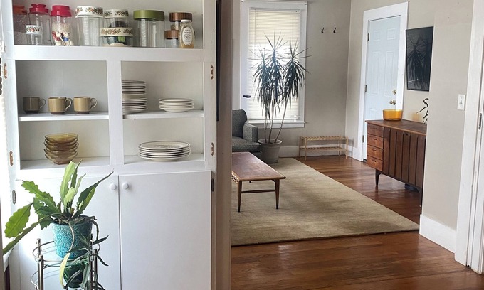 Step back in time with our vintage-inspired VRBO just a short walk from downtown Littleton. Located in a quiet multi family home, this cozy retreat boasts retro decor, including midcentury furnishings and knick-knacks. Enjoy the convenience of modern amenities alongside the nostalgia of yesteryear. Perfect for couples or solo travelers seeking a unique, comfortable getaway with easy access to local attractions such as Schilling, Chutters and the White Mountain National Forest.