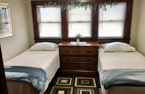 Step in to some of Sedalia's history by staying at the property formerly known as the Chaney Seed Company. This peaceful home rests on 9 acres of lush greenery. Relax in vintage farmhouse charm (with some modern comforts) while reflecting on simpler times. Nestled just outside of city limits, but only a few minutes from the Katy Trail, Missouri State Fairgrounds, historic downtown, dining, and shopping! There's plenty of parking.