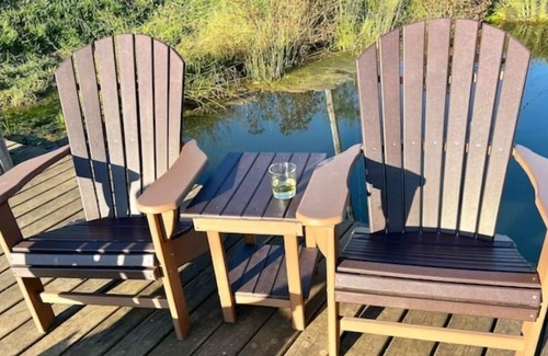 One of my favorite places on the farm is the dock. I have a 1/4-acre, spring-fed pond, great for swimming and stocked with bluegill, bass, and other small game fish which come when I call on summer evenings. You will find me there on most evenings and are most welcome to join me for a glass of wine. For chilly evenings on the dock, you will enjoy the calm and charm of the wood pellet stove and a cup of cocoa.