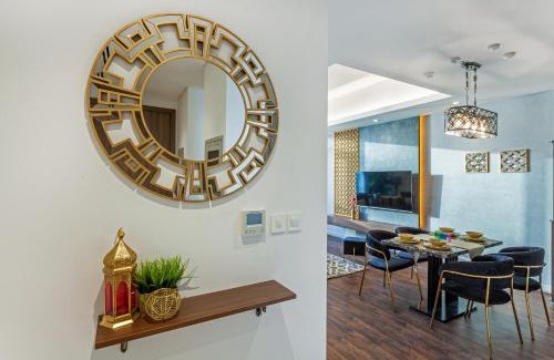 4.2 miles from Al Hamra Mall in Ras al Khaimah, Live feel and get lost in waters features accommodations with access to a public bath and open-air bath. This beachfront property offers access to a terrace, tennis at the tennis court, free private parking, and free Wifi. The apartment provides a pool with garden views, fitness center, and an elevator. The spacious apartment is composed of 1 bedroom, a living room, a fully equipped kitchen, and 2 bathrooms. A flat-screen TV is featured. The accommodation is non-smoking. Guests can eat at the on-site family-friendly restaurant, which is open for dinner, lunch, brunch, and high tea. For guests with children, the apartment offers a children's playground. A car rental service and a private beach area are provided at Live feel and get lost in waters. Al Hamra Golf Club is 4.6 miles from the accommodation, while Tower Links Golf Club is 11 miles away. Ras Al Khaimah International Airport is 14 miles from the property.