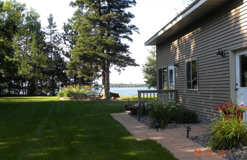 Welcome to our beautiful 3 bedroom loft lake home. Easy living at our cabin. Our open floor plan offers great space to relax in. The master suite on the main floor, plus two bedrooms upstairs and a loft offer plenty of sleeping space. Cable TV, DVD Player and Playstation 2 plus internet offers all the technology you may need. We have board games, puzzles and cards for the occasional rainy day as well. The main floor boasts a 4 season lounge area, great for playing cards while keeping an eye on the lake. The family room has a gorgous stone gas fireplace for those cool nights. Full laundry allows you to never have damp towels. On the main floor we also have a beautiful half bathroom. Round Lake is one of Minnesota's clearest, spring fed lakes. It is just over 500 acres so a great recreational lake. One third of the lake is state land so it is a quiet lake with just one public access.