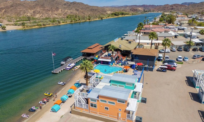 🌴 Prime Front Row Location: Wake up to unobstructed views of the Colorado River and the majestic mountains beyond, right from your front-row spot at Barefoot Beach Club.