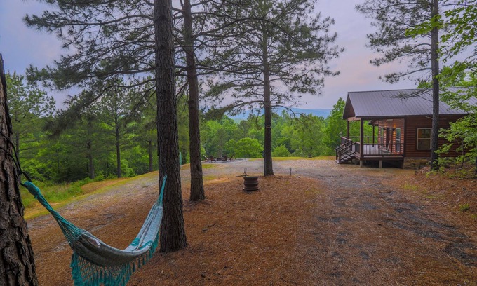 Through the tall pines , drive into a little slice of secluded haven that has million dollar views of Kiamichi mountains and the Little River access right on the property. You will be able to relax by the private river beach where you can fish ( there's Perch, Bass and even Trout !) , hike, launch the kayaks/canoes or just sit and relax in hot tub.
