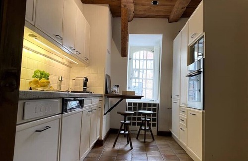 Modern comfort (elevator, floor heating, Air-condition, high-speed internet, workstation, cable TV, kitchen appliances, laundry facilities, easy grocery access) with the charm of past (open fireplace, monumental staircase). Quiet location to inner court yard, close to public transport system.