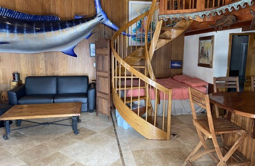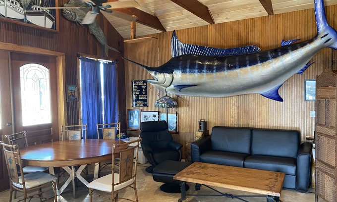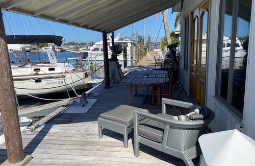 Take it easy at this unique and tranquil getaway located right on the water in a beautifully artistic and tropical landscape marina. Enjoy sitting on the dock watching the shrimp boats come and go or enjoy grilling watching key west famous sunsets.