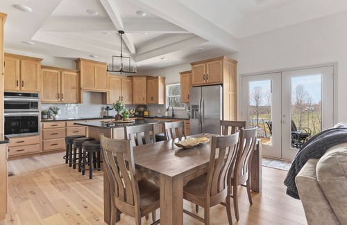 Nestled in a stunning, secluded setting, this charming three-bedroom home sleeps up to 12 guests and overlooks its own private lake. Bordering the breathtaking Mammoth Cave National Park, you’ll enjoy both privacy and proximity to a wide range of outdoor adventures.