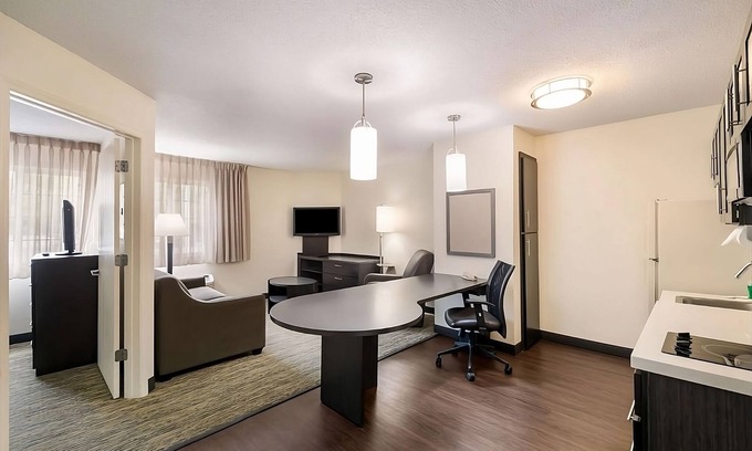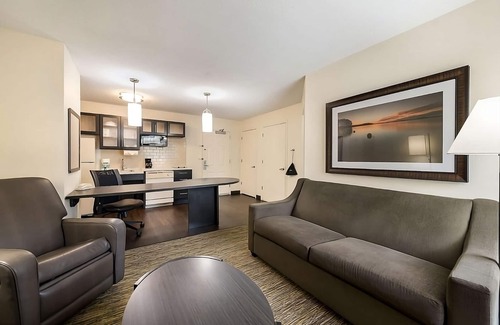 This extended-stay property is designed to provide comfort and convenience during all guests' visits. Our spacious suites feature fully-equipped kitchens, separate living and sleeping areas, and complimentary high-speed Wi-Fi, ensuring a productive and enjoyable stay. Keep up with your workout routine in our on-site fitness center, and take advantage of our guest laundry facilities. Our 24-hour market offers a selection of snacks, beverages, and essentials for your convenience.