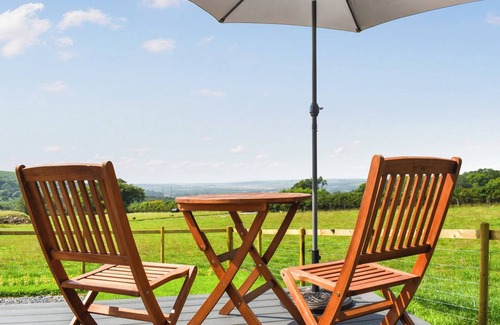 Bedroom: Kingsize (5ft) Bed. Electric central heating, electricity, bed linen, towels, Wi-Fi and fuel for wood burner included. Welcome pack. Enclosed front garden with patio, sitting-out area and garden furniture. Private parking for 2 cars. No smoking. Please note: No children or babies allowed.. Tucked away on a peaceful working farm, Llandremor Fawr Lodge offers a cosy countryside escape with stunning views over the rolling hills of Pontardulais and the Swansea Estuary.