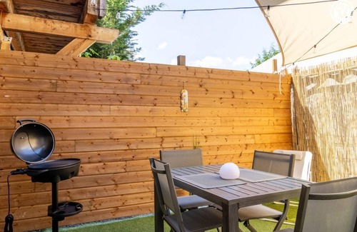 Single-story cottage with independent access comprising a living room-kitchen lounge area, a bedroom (1 double bed 160x200 cm) with smart TV, electric shutters, a bathroom (shower and WC). 2 furnished terraces (electric barbecue). Parking in the courtyard of the property. Gite adjoining the owners' house, in a residential area surrounded by countryside in the heart of the Savoyard vineyards. The cottage boasts two terraces facing east and north, with garden furniture and an electric barbecue. A bakery is 1.5 km away, while shops in Les Marches are 4 km away, and a supermarket is 7 km away.
