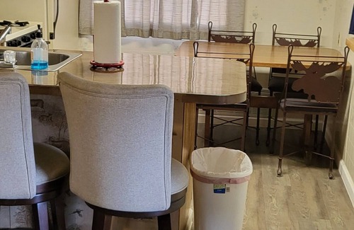 Leave the crowded city behind and get away to the country. Minutes from groceries and restaurants, but with an off the grid feel. Lots of parking. Nearby attractions include Smoke hole caverns, Seneca Rocks, Spruce Knob, Nelson rock and many more. Cabin offers full kitchen and living room. Covered porch to sit and relax. Huge deck on the river with cornhole, shuffleboard. Charcoal and gas grill for cooking. The bar/deck area is a common area for our Happy Bottom community. Firepit by the river for bonfires. Firewood bundles available for $7. Easy in and out river access for kayaks and rafts.