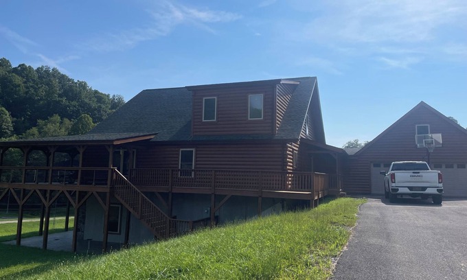 Enjoy your morning coffee on our deck as you take in all the fresh mountain air and peace and quiet. Wildlife can be seen day and night. You’ll be surrounded by beautiful mountains with clear views of the sky. We can sleep up to 15 people comfortably. We have a fully stocked kitchen so you can cook and enjoy your meal at our beautifully made dinner table with large lazy Susan on top. The bottom floor is where all the fun can be had. We have basketball, ping pong table, x box 360, and a kids size pool table/air hockey. We also have corn hole boards, board games, and books to keep your family entertained. We also have free washer and dryer access as well as a dishwasher you can use while you stay. We hope you come stay with us 💛💙