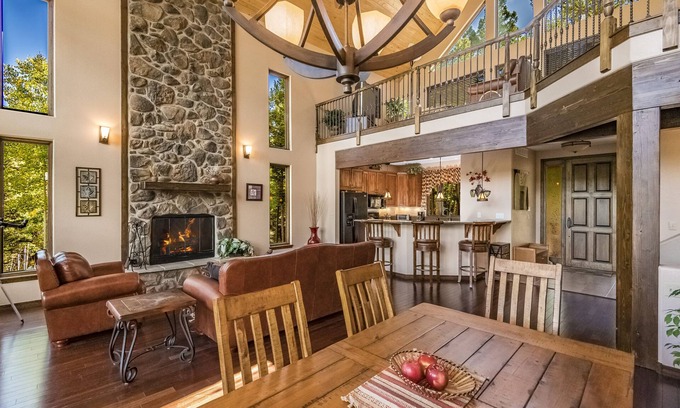 Vaulted ceiling, balcony, covered decks, gorgeous views of Wheeler and the surrounding forest.