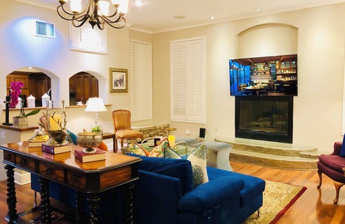 Elevated hilltop residence, offering panoramic views of San Gabriel Valley, mountains, and city lights. Sleeps 12 in 6 bedrooms, featuring a lavish master suite and office. Spacious family room for gatherings. LQuick access to 60, 57, 10, and 91 freeways. Abundant restaurants serving diverse cuisines. Your VIP escape! Ideal for group golfers, with access to numerous courses across LA, Orange, Riverside, Ventura, and San Bernardino Counties. Tourists will adore it. Self-check-in via smart lock. Easy access to all the tour attractions. One-of-a-kind property you will enjoy for your trip.