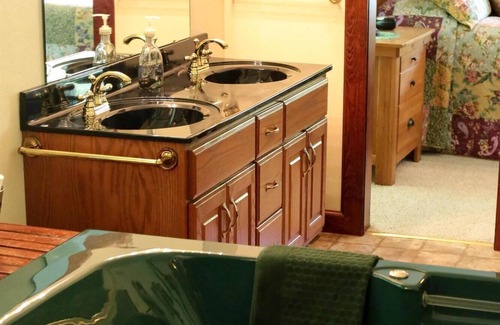 This cedar sided home is available for rent as a 2-10 person rental with the option for single room rentals up to the whole house. We have a Master Bedroom suite with bathroom complete with jacuzzi tub and shower. The suites are available on a one night basis, and they include a small fridge, microwave and coffee pot. The whole house rental includes three queen bedrooms, one twin trundle bedroom, a queen hide-a-bed couch in the living room and two bathrooms, one with jacuzzi and shower, the other with a tub/shower unit.