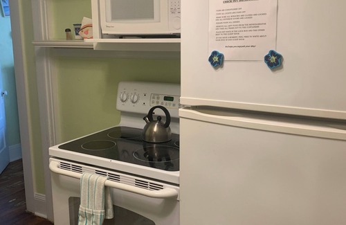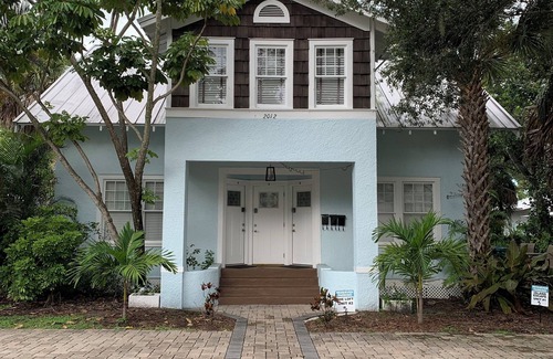 The Flats in Downtown Melbourne is a unique triplex located in the heart Downtown Melbourne, just steps from shopping and dining! The Tropical Escape unit is located on the first floor, very clean, non-smoking, and artistically decorated with tropical decor to be your relaxing home away from home! The Tropical Escape comfortably accommodates two guests! It has been completely renovated, but still maintains its original historic character throughout including the original patina pine hardwood flooring, unique trim details, and claw foot tub!