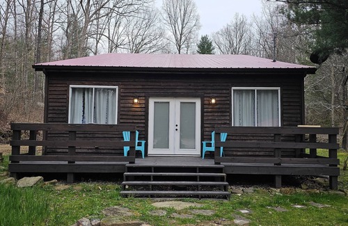 Cozy and Comfortable: Designed with your comfort in mind, our cabin features 2 cozy bedrooms, an upstairs loft with a small game table great for a competitive game of checkers, a comfortable leather futon which provides sleeping arrangements for 2, a fully equipped kitchen for your culinary adventures, a warm and inviting living area, a relaxing firepit out back for roasting those marshmallows, smores, or hot dogs, and a spacious deck perfect for stargazing or enjoying your morning coffee while listening to the sound of morning nature.