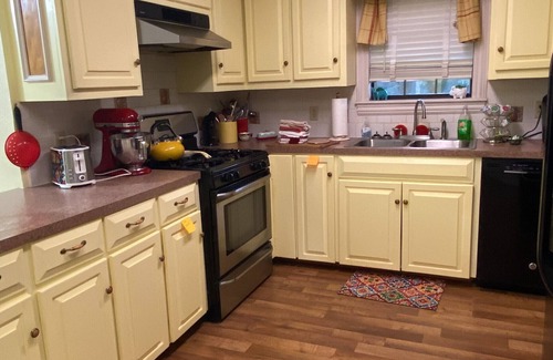 Your stay in this spacious 1800 square foot home includes three beautifully decorated bedrooms, accommodating up to eight guests comfortably. With two full baths, a fully equipped kitchen, and a large gathering area adorned with cozy furniture, each corner of the house invites relaxation and togetherness. Enjoy the outdoors on the front porch or gather around the fire pit on the patio. For those traveling in RVs, you can take advantage of the convenient RV hookup available, making it easier for friends and family to join the celebration.