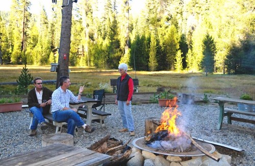 Private and secluded cabin on Kramer Meadow. Come and relax in the mountains at 7200 ft.. Year round access with year round activities for each season. Kramer meadow changes each week in the summer with beautiful wildflowers, in the winter time it becomes a winter wonderland. Spring time brings the Mallards flying in and floating down our seasonal creek. Queen bed in the 1 bedroom, queen hide abed and 1 roll away. Bathroom has laundry facilities. Gourmet commercial type kitchen with wood burning stove (wood provided) along with a 6 burner/griddle commercial stove. Cabin opens onto the fire pit area with bocci ball court on the edge of the meadow. Bring your horse and ride the trails. Cabin sleeps 7 (max) and separate bedroom cabin sleeps 4 (max) extra charge per person. 2 night (min) stay and on holidays 3 night (min)