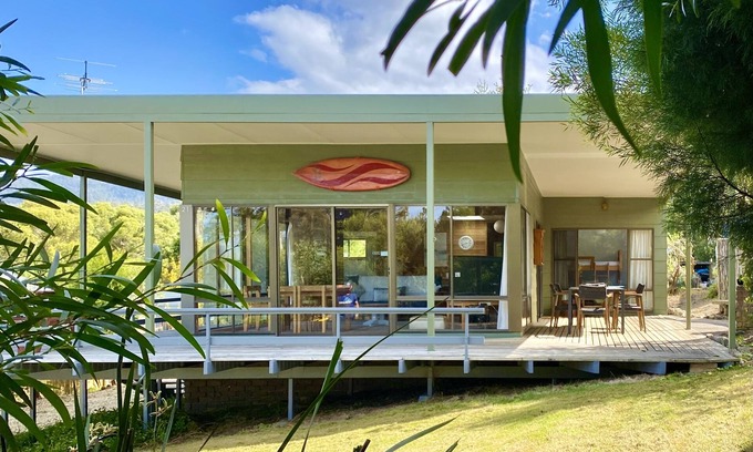 Designed to capture abundant sunshine, with an open plan living at the heart warmed by a cosy wood heater. Enjoy the views from the sheltered deck or relax in the private BBQ courtyard, then listen to the ocean as you drift to sleep.