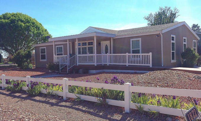 Master Suite with sitting room, single floor, wheelchair accessible, comfortable amenities, with two bedrooms two baths, located near downtown Kanab, in a quiet, rural neighborhood where you can enjoy the serenity of the Colorado River Plateau and the Vermillion Cliff formation of the area. Enjoy the beautiful sunrises and sunsets and beautiful dark night skies, sunny days and gorgeous cloud formations. Sit on the front porch, eat or play cards, enjoy the dark, starry night skies. ►*Please note this property is best suited for mature adults, so no children allowed. No oversize vehicles/RV's or trailers (there is not a parking area for them). Check-in time is 4:00 p.m. (Mountain Time), and check out time is 10:00 a.m. (Mountain Time).*◄