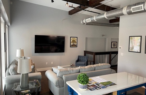 New in 2022, a fully furnished loft in the heart of downtown Bristol, TN! Located above the highly rated Cascade Draft House and right across the street from the Sessions Hotel and Southern Craft BBQ. With access to State Street, you are never more than a few blocks away from any entertainment or excitement that Bristol has to offer. Loft has street access to State Street where you can access any of the local shops or restaurants. Also, the loft is only a few miles away from the recently opened Bristol Casino, future home of Hard Rock! Come unwind and relax at this brand-new loft, that just recently finished construction in early 2022!
